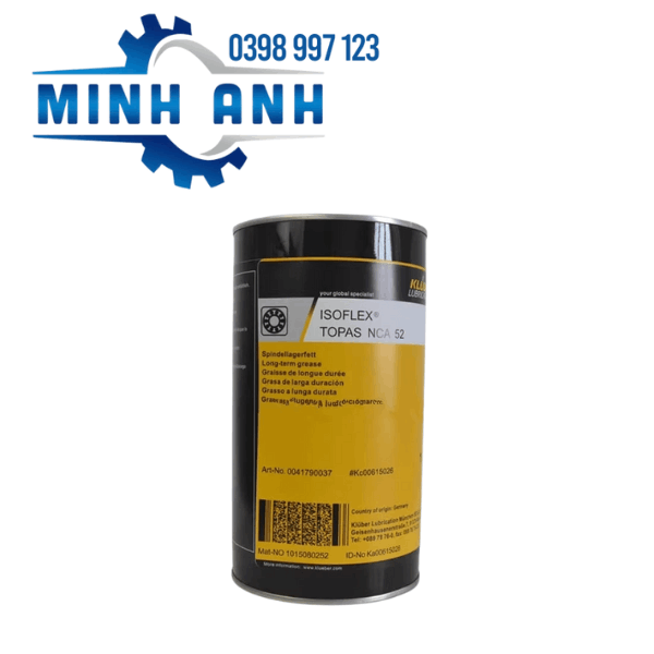 Kluber Isoflex Topas NCA 52 là mỡ đa năng với các phụ gia bảo vệ chống mòn đặc biệt cho vòng bi tốc độ cao, vít bi, bánh răng nhỏ, thanh ray ghế ngồi ô tô, hướng dẫn chuyển động tuyến tính và các ứng dụng khác trong ngành công nghiệp